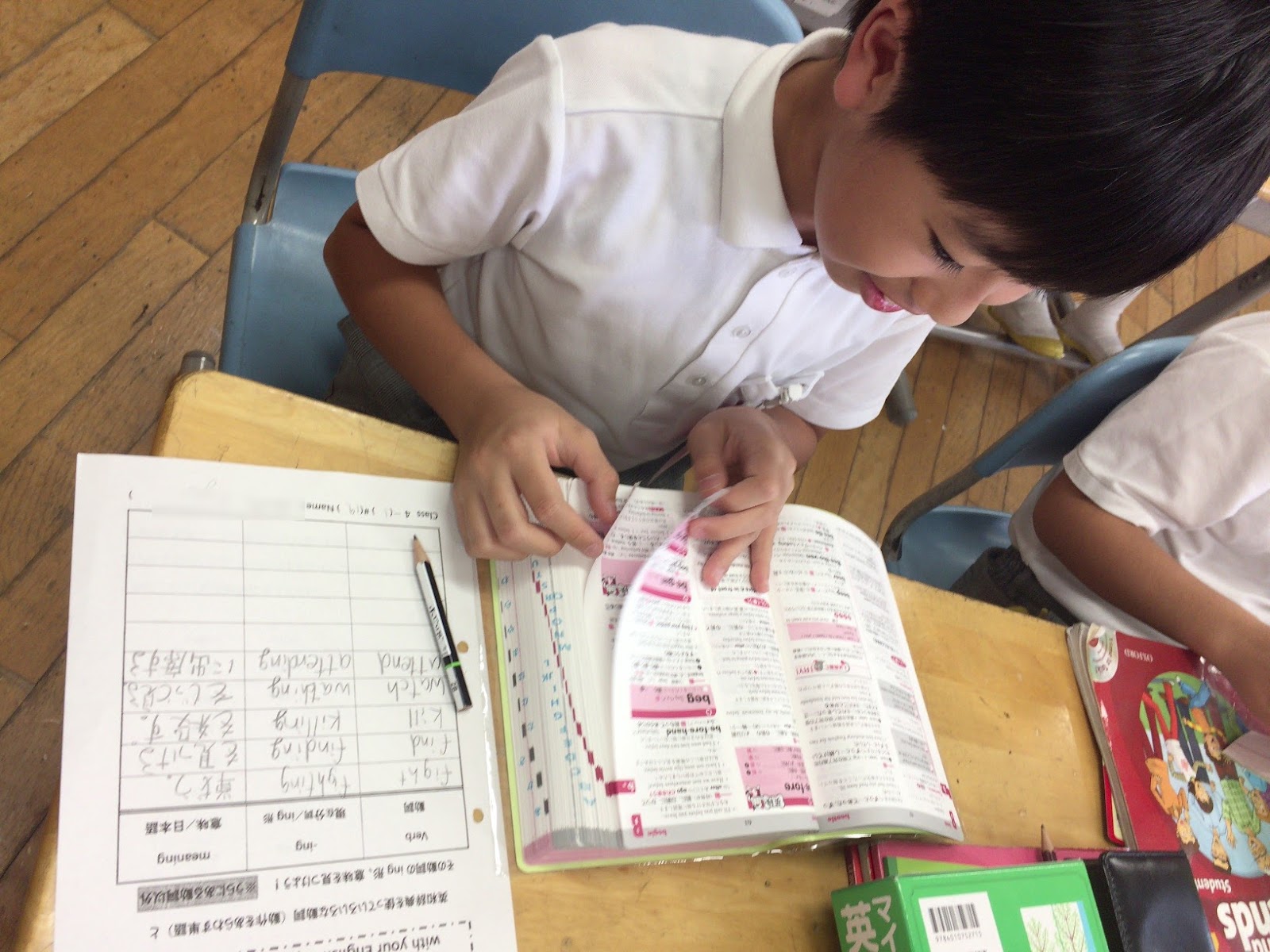 一生懸命辞書で調べていました。