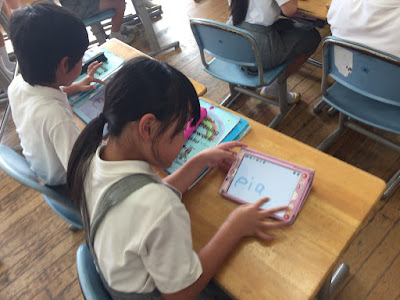 英語科では1年生から6年生まで、ICT機器を使って指導をしています。
