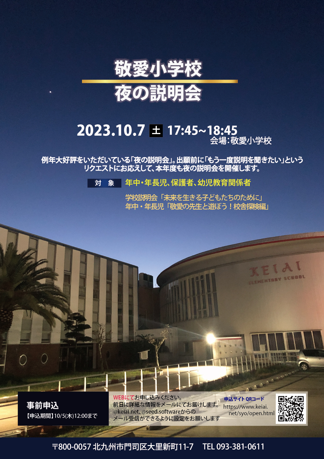 次回のオープンスクールは9月21日(木)の授業見学・学校説明会。そして10月7日(土)には、夜の説明会を開催します。皆様のご来校を心よりお待ちしています。