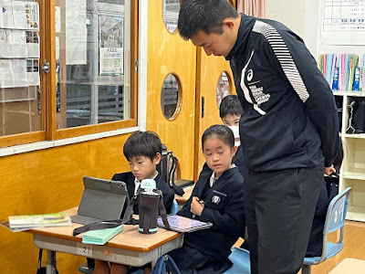 この日の授業では、教科書の説明文の書き方に習って、先月行ったEXPOで作った、オリジナルおもちゃの作り方の説明書を作成していました。